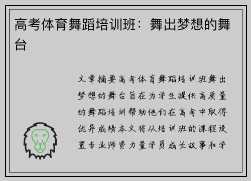 2025-06-26 22:50:51精彩赛事回顾 在这篇文章中,我们将对中国队在最近的体育赛事中的精彩对决进行全程回顾与分析。通过视频直播的方式,球迷们能够身临其境地感受到比赛的紧张氛围和激烈竞争。我们将从比赛的精彩瞬间、战术分析、球员表现以及球迷互动四个方面进行详细阐述,帮助球迷们更好地理解比赛的每一个细节,确保他们不容错过任何精彩...
