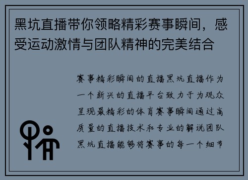 2025-06-27 11:12:13赛事概述与精彩回顾 贵州3直播为广大观众带来了精彩纷呈的体育赛事回顾,展现了运动员们在赛场上的拼搏与荣耀。通过对赛事的全方位报道,观众不仅能够感受到比赛的紧张氛围,还能深入了解运动员们背后的故事与努力。本文将从赛事的精彩瞬间、运动员的拼搏精神、观众的热情支持以及赛事的影响力四个方面进行详细阐述,力求...